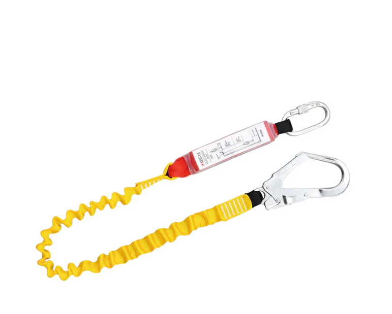 This safety kit includes 1 carabiner, 1 energy absorber, and 1 forged large hook, paired with a 40mm elastic webbing tube (retractable length: 1300-1800mm), packaged as 20 units (55x26x30cm, 21-22kg) for efficient deployment.