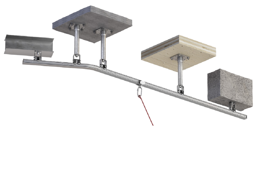 THE RAIL SYSTEM IS ADAPTABLE FOR INSTALLATION ON VARIOUS SUBSTRUCTURES USING SPECIALIZED PLATES, FUNCTIONAL IN ENABLING HANDS-FREE, SAFE OPERATION THROUGH SLIDING AND RETRACTABLE MECHANISMS, AND SAFETY-CERTIFIED FOR MULTI-OPERATOR ROPE ACCESS APPLICATIONS FOLLOWING RIGOROUS TESTING. |