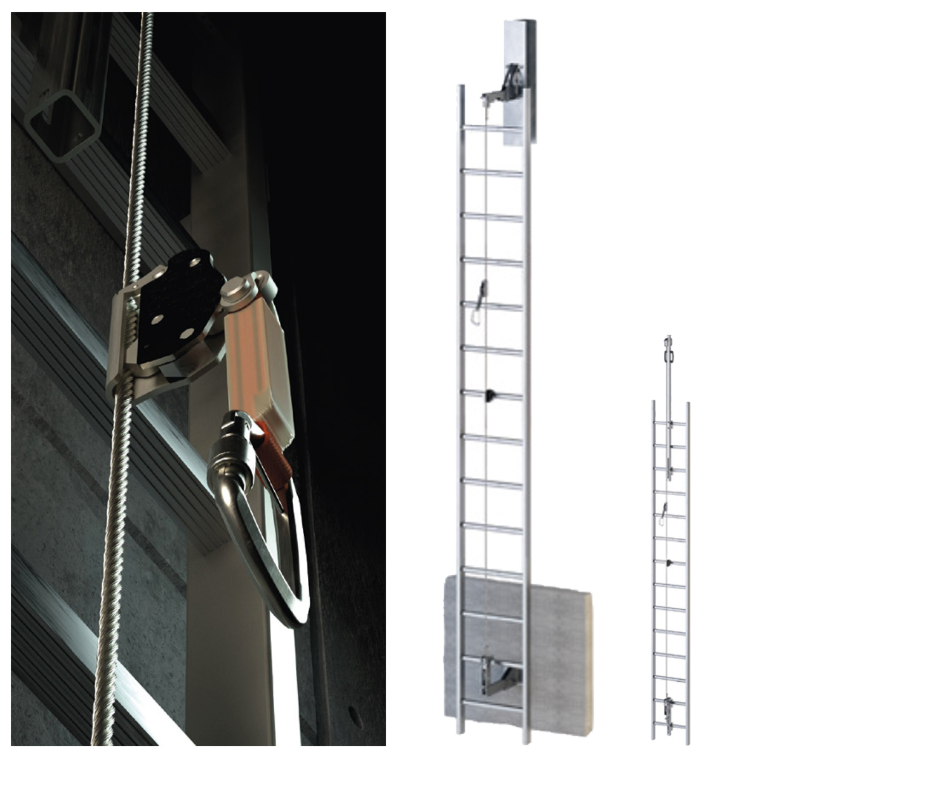 The system's special-purpose supports enable installation on CLT, concrete, or steel substructures, with adjustable wall-to-lifeline spacing and functionality for walls inclined up to 15° from vertical.